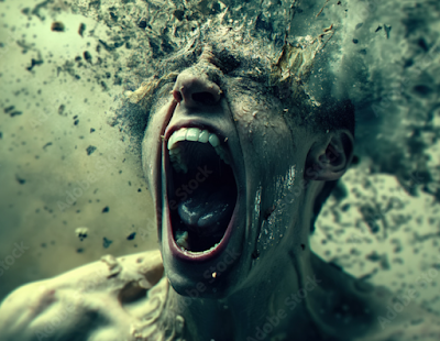 Grimes' eyeballs pop like grapes, his intestines spool out of his body, he turns upside down and spins, and his body flies apart in all directions, splattering every surface with blood and bone and guts.
