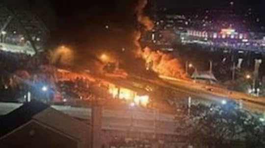 Meanwhile, a HUGE FIRE has immolated an overpass of the Santa Monica Freeway, which cuts across the center of Los Angeles. The road is one of the city's busiest and most important arteries, moving over 300,000 vehicles a day. The fire that shuts down the Santa Monica Freeway cripples the city, and the Emmy Awards are only two weeks away!!