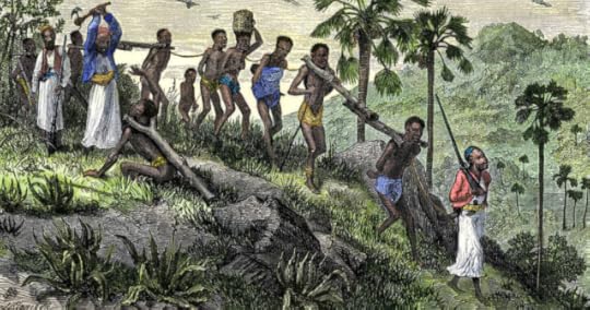 A woodcut from 1888 depicts a slave caravan in the Congo