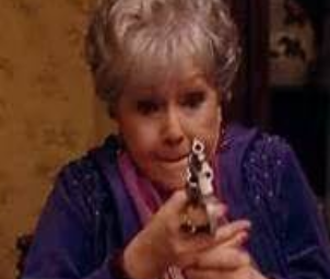 At Jimmy's viewing, his sister Angie Rosolli leans over the casket and shouts at Grandma, "You'll never get Jimmy's money. You don't deserve his money. I'll see you dead and buried before you get his money. That money goes to the family, not to some gold-digging whore." Grandma calls Angie a frump crone, and the lid of the casket slams down on Angie's fingers, like an act of God....or the result of the evil eye.