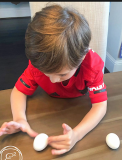 Here's what you do: Take an egg from each bowl, and spin them on a smooth surface. After a few seconds, touch each egg lightly, just to stop the spinning. The cooked egg will remain still, but the raw egg will start twirling again. This happens because the cooked egg is a solid object, but the raw egg is a shell with liquid inside; the liquid keeps turning and drags the shell along with it.