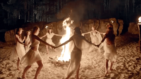During the Rites, priestesses sing and dance, and traders set up outside to barter for goods.