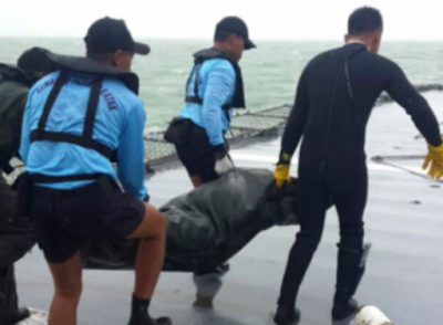 harbor. The deceased is in a sail bag, weighed down by an anchor, and