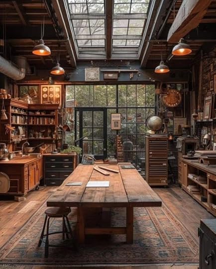 At the bookbinder's, it's Lilian's task to maintain order in the shop, with its endless drawers and shelves of cloths, velum, leather, paper, gilt leaves, presses. blocks, sewing frames, spools of thread and sacks of glue, as well as 'tools so numerous it would take a lifetime to use them all: awls, knives, scalpel blades, bone folders, rulers, brass trindles, needles, shears, hammers, and hog-hair brushes.'