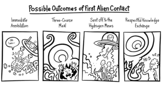 On the other hand, the aliens might come bearing gifts. They've traveled far to get here, using advanced technology, and might be willing to share. The authors speculate, "What if they could just tell us how everything works, so we don't have to blindly hack away for decades or centuries to gain this elusive knowledge?"