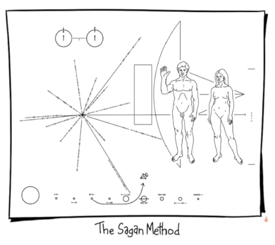 More recently, Carl Sagan designed a message that would be inscribed on plaques attached to the Pioneer 10 and Pioneer 11 spacecrafts, launched in the early 1970s. This is it: