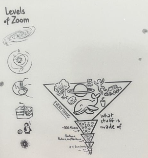 Humans are curious about everything, but (normally) only see the 'big picture.' At a tennis match, for instance, humans can observe the ball going back and forth, but not the atoms in the ball. This works for big things like planets and tennis balls because we can zoom out to determine how the objects move without referring to the atoms they're made of.